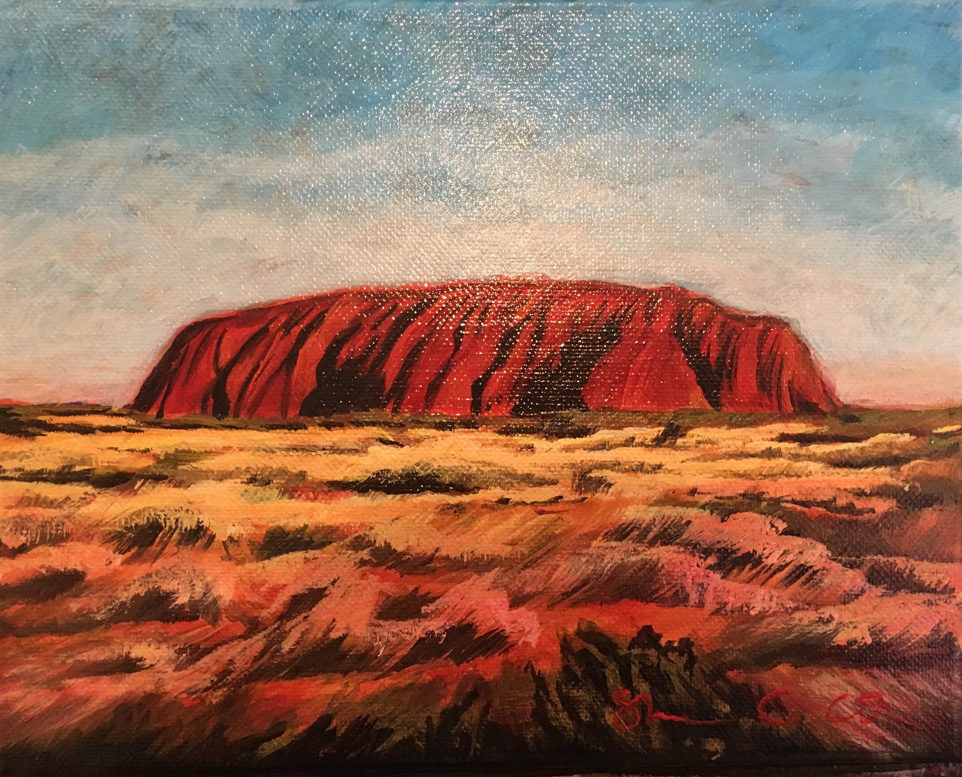 Inspired by a new underpainting technique using Quinacridone Magenta, Uluru was born. You can almost feel the Australian heat radiating from the red earth that day.